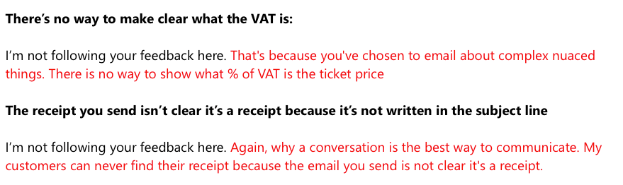 ‘I’d like to have a conversation with a human being. To do this I’ve had to ask your team, send you a message on social media, and then email you. Please can we just speak’
