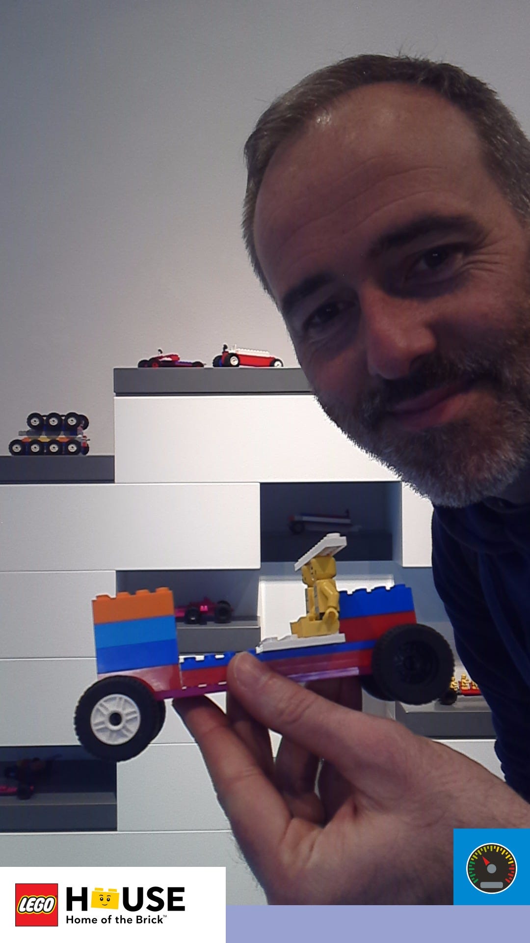 As you go through the exhibitions, being invited to make cars, design fish, and create flowers, screens are subtly positioned in the corners of the rooms. At any point, you can take a creation over, scan your wristband, and it’ll take a photo of you with it, to be collected with your other photos of the day. (I was particularly proud of this car, perfectly weighted to jump the bridge, one of the challenges in that room).