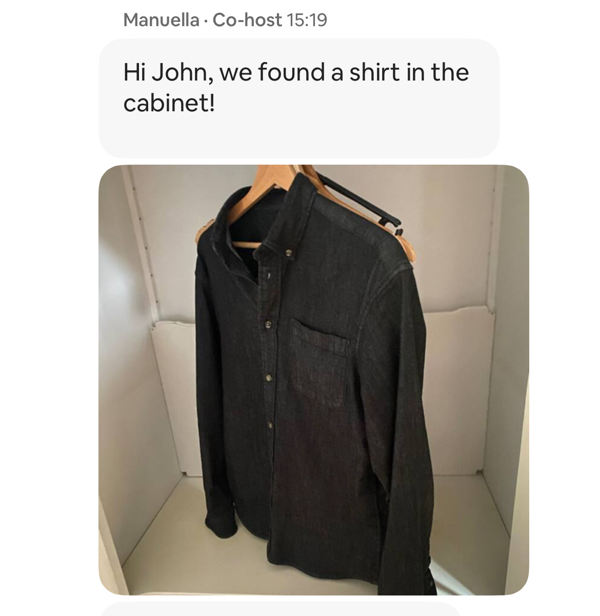 A few hours later, when I got back from my meetings, there it was waiting for me (along with lots of gleeful comments from my colleagues on how a woman had turned up saying ‘I have John’s shirt, he left it at my apartment’)