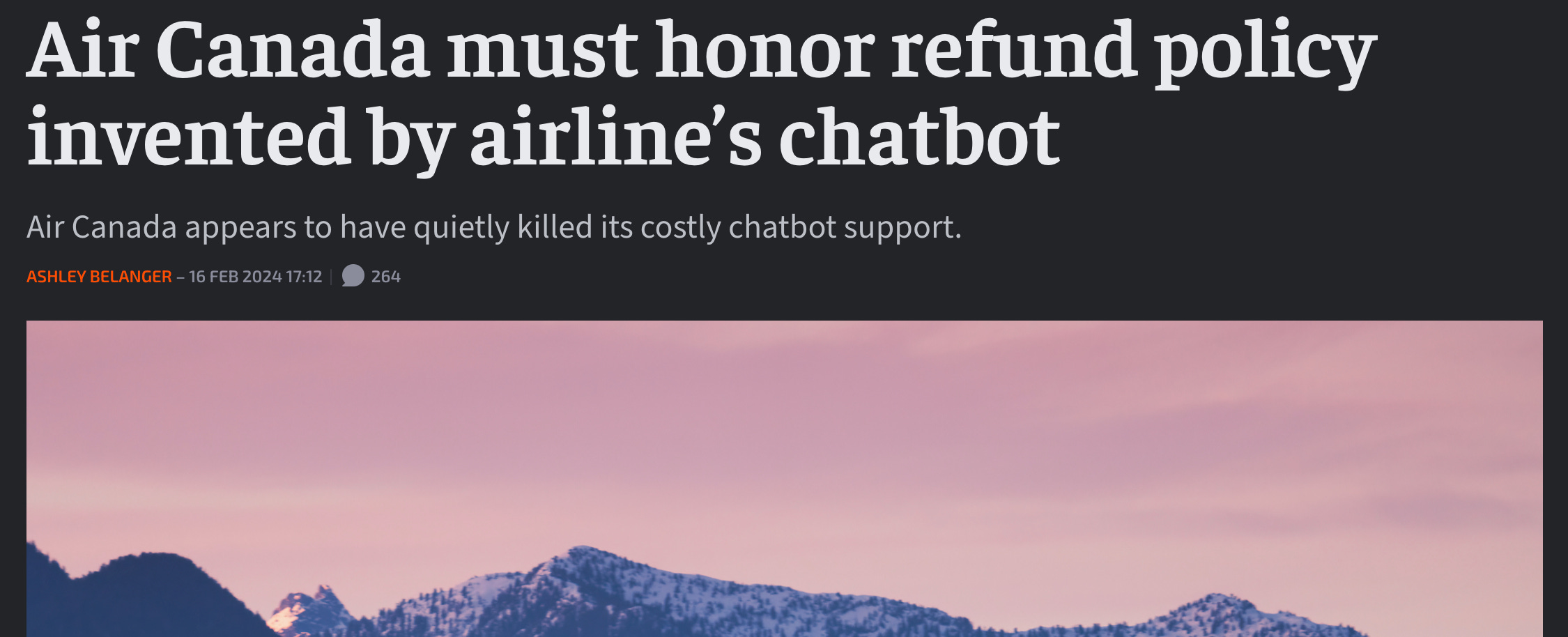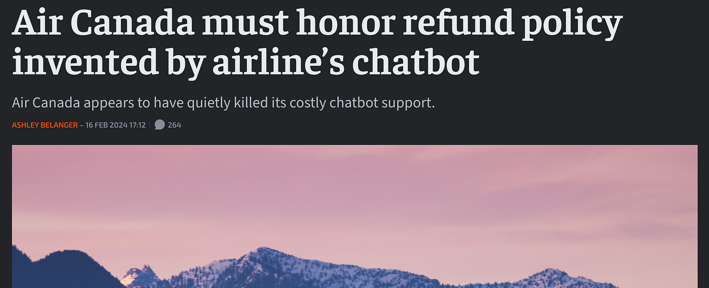 AI will transform these painful experiences. And in doing so, make the base level of almost every customer experience significantly better than it is today, just as Google and the iPhone did. Just as long as it doesn’t start making up it’s own rules, hey Air Canada?