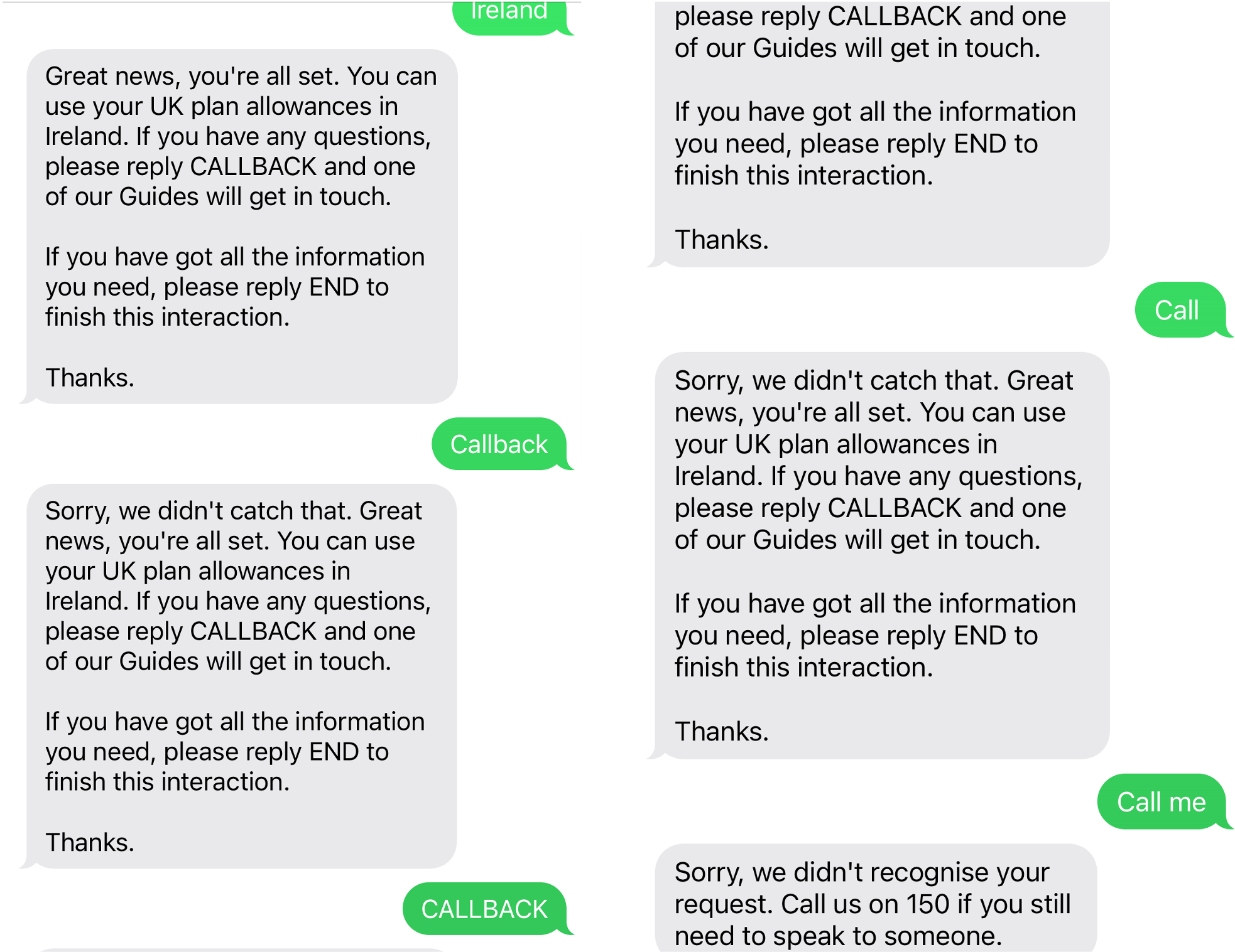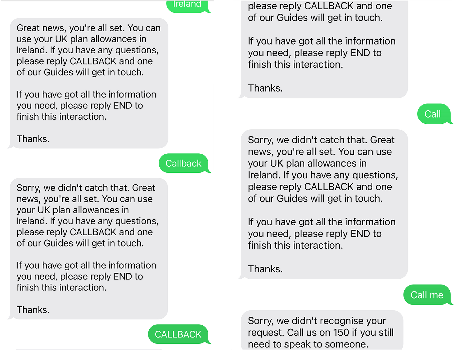 Finally, with me trying multiple combinations of options to try and unlock the code to speak to a person, it sent me a message with the option to get a callback. It’s fair to say this didn’t go to plan. But did end with them, suggesting I call 150 if I want to speak to someone.