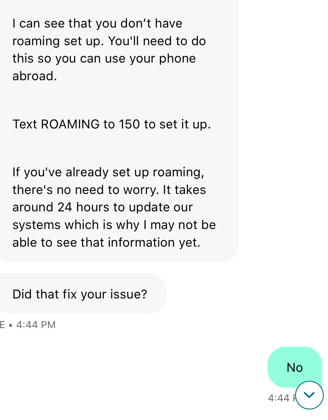 First, it told me how to set roaming up on my phone, and was very pleased to confirm to me that data roaming was, indeed, included in my contract.