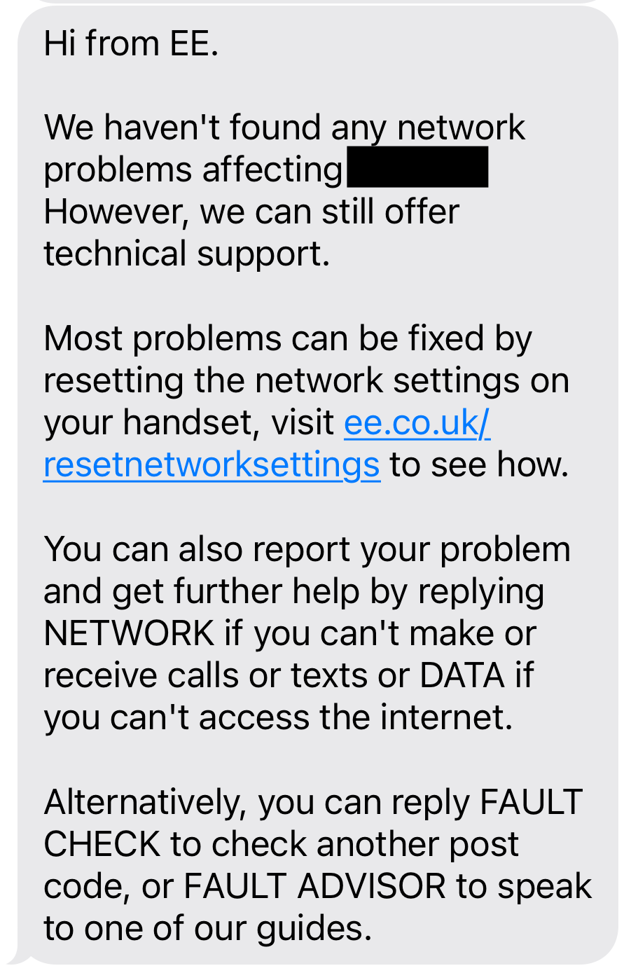 When you phone EE, they have quite a smart system where you say what the problem is, and it sends you an SMS link to take you through to a webchat with the right team. I used to really like that. This time though, it had changed, and instead of connecting you to someone, it takes you to… a series of FAQs on the topic it thinks you want to know about.