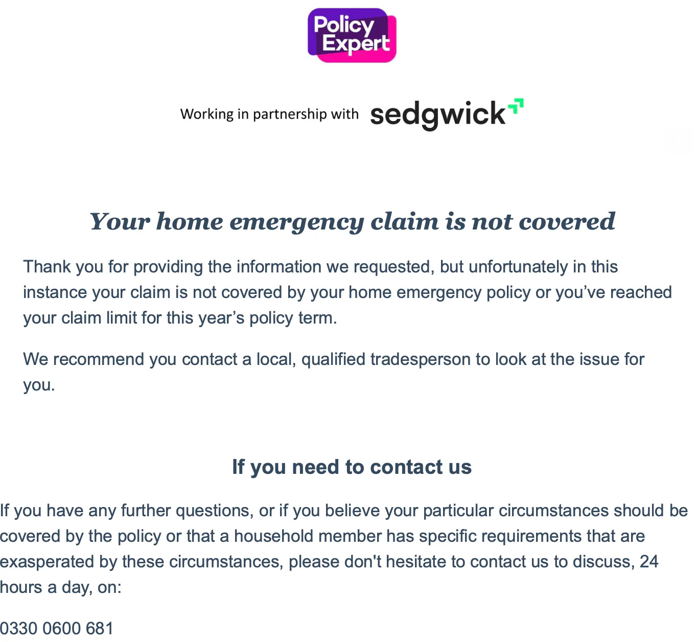 And luckily for me, my Home Insurance company (Policy Expert) were all of those things.