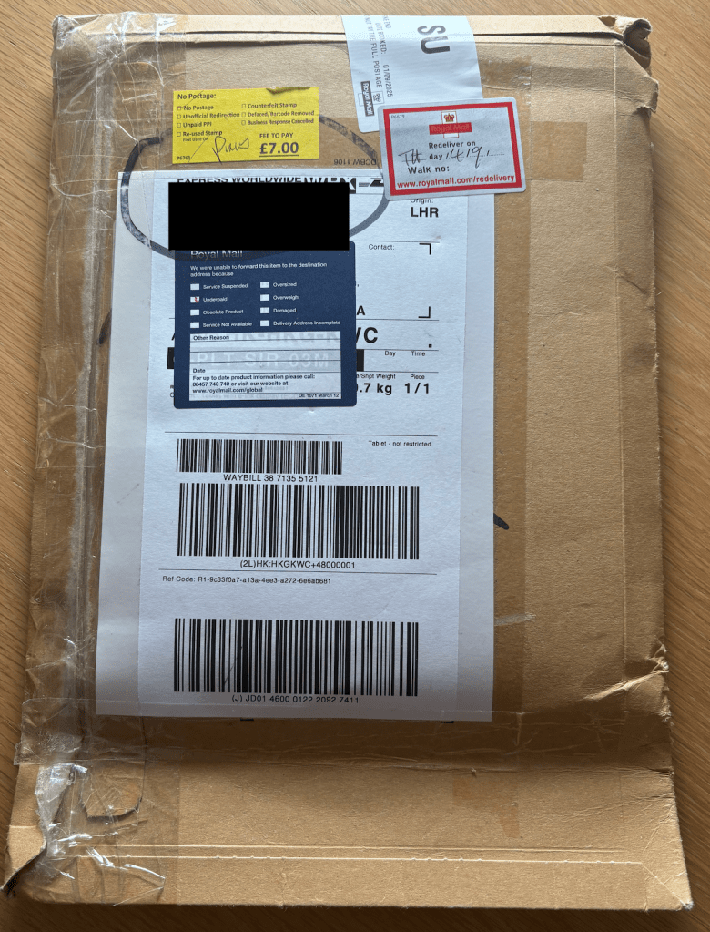 Two days later, my original Remarkable arrived back at my house (with a surcharge of £7 to pay)