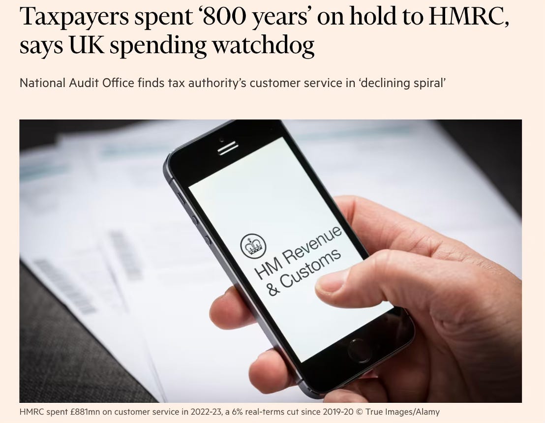 One study recently worked out that taxpayers spent nearly 800 years on hold to HMRC in 2022-23. 800 years. That would take you back to roughly the Middle Ages. Which is roughly where HMRC’s customer experience is.